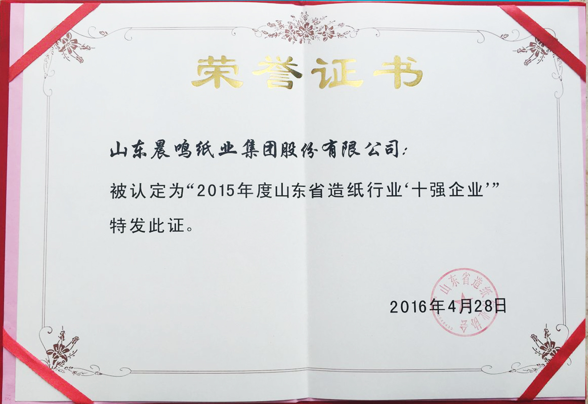 2013/5 山东省造纸行业协会发布了“2012年度山东省造纸行业‘十强企业’”名单,我公司再列榜首。