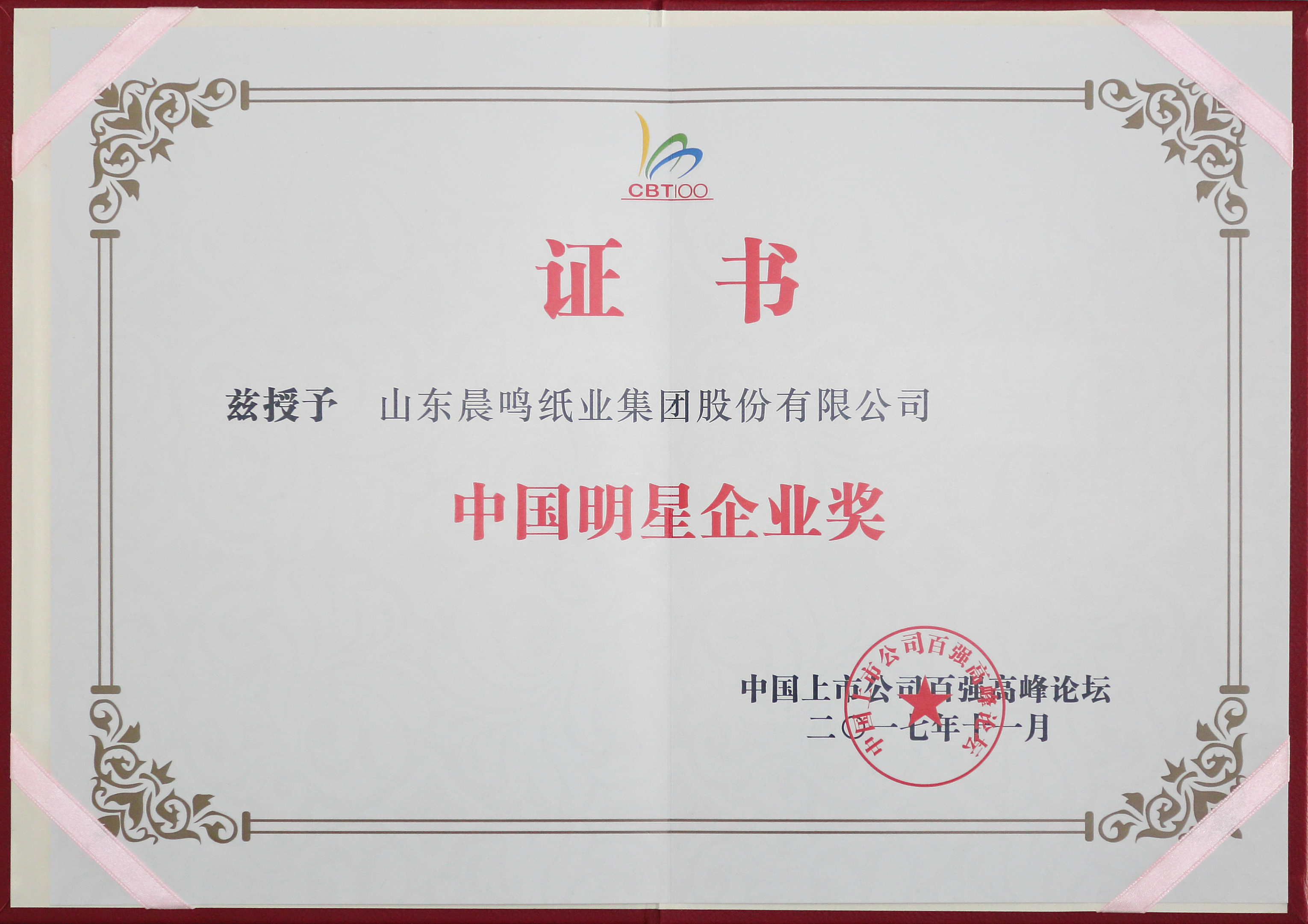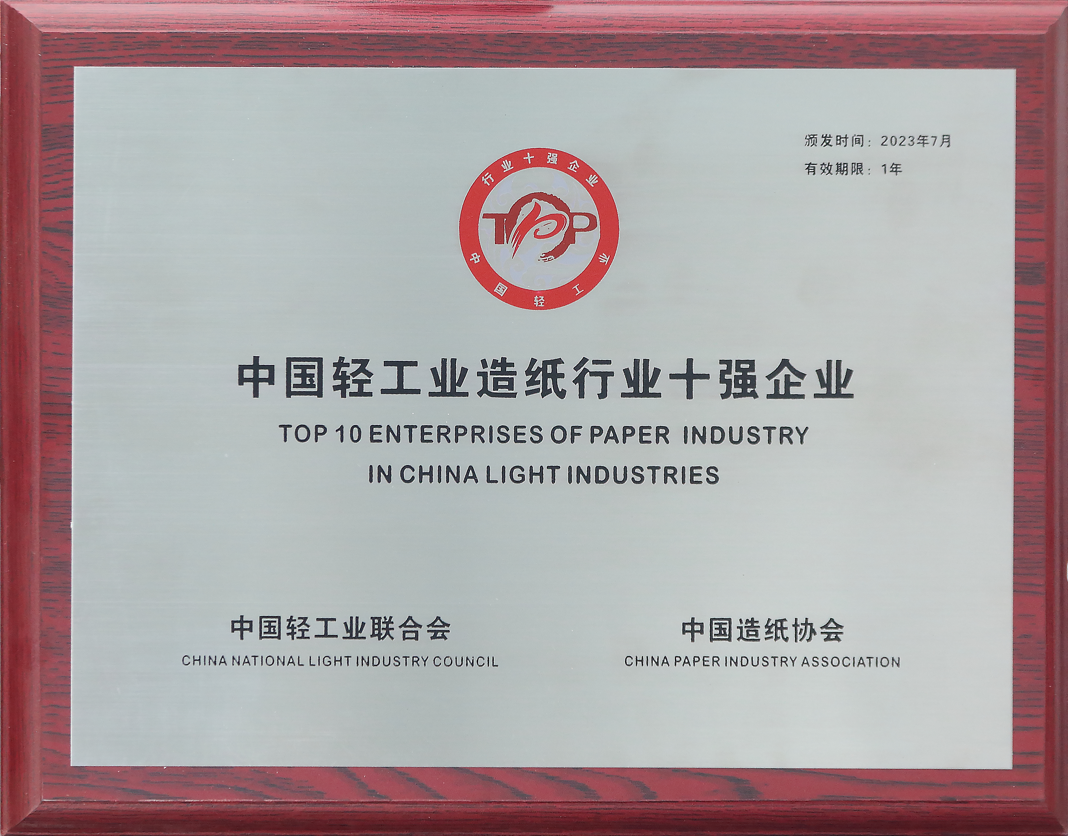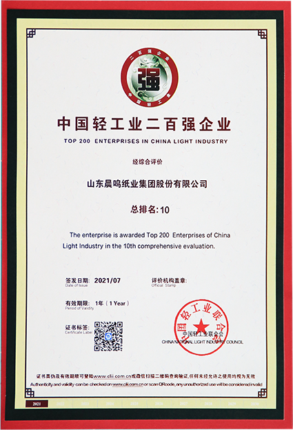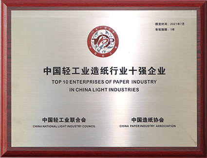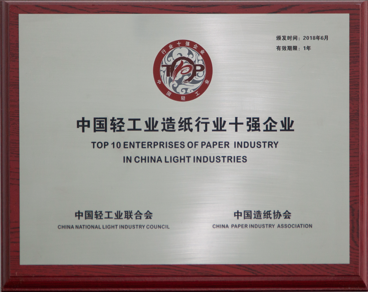 2013/5/28 中国造纸协会第三届理事会第五次扩大会议在武汉召开,会上公布了由中国轻工业联合会 ,中国造纸协会评选的2012年度“中国轻工业造纸业十强企业”榜单,晨鸣位列其中。