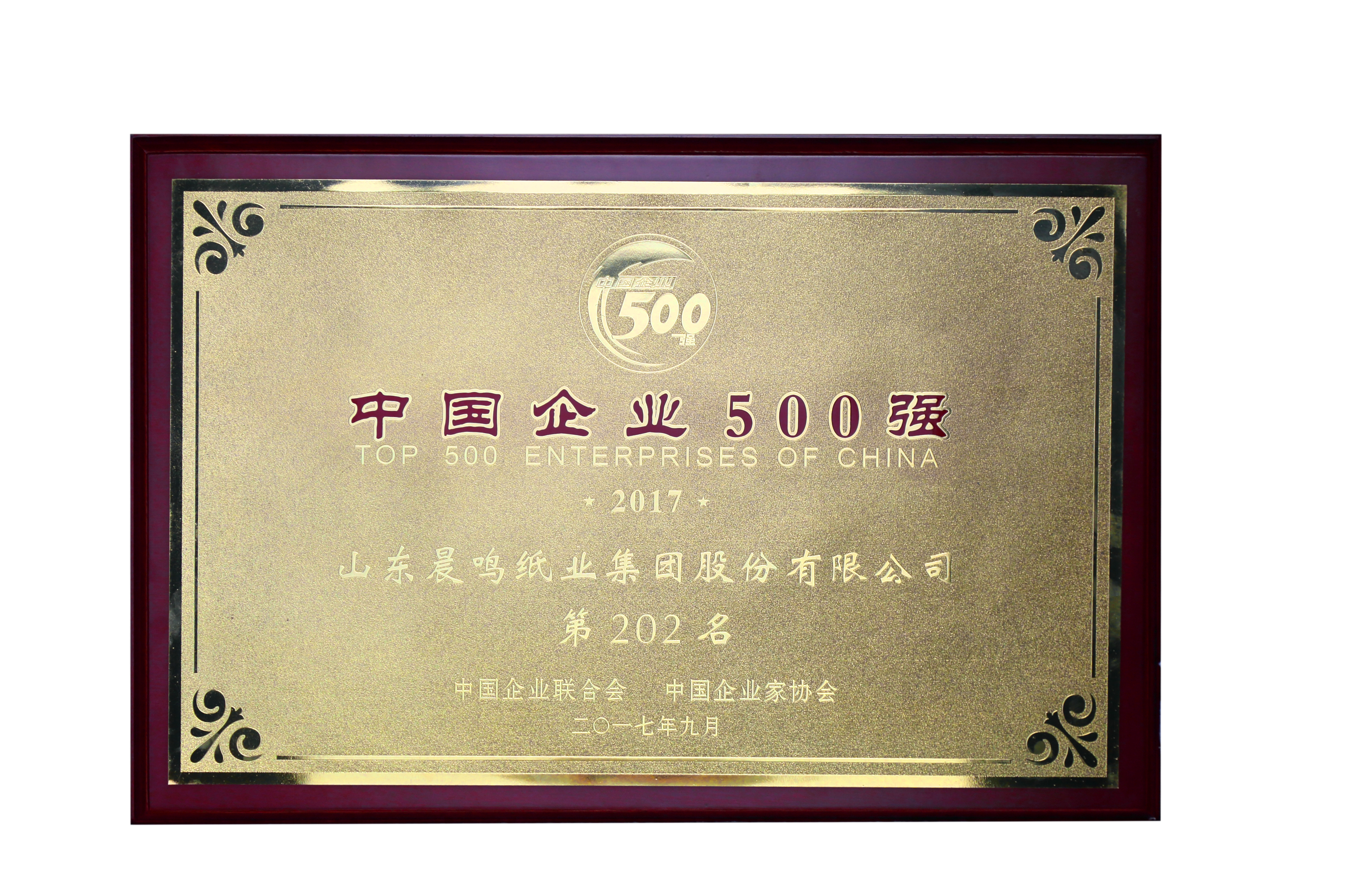 2013/8/31 由中国企业联合会发布的“2013中国企业500强”排行榜揭晓。我公司位列第227位,较上年提升了110位,在榜单中处于造纸行业领跑地位。在同时公布的“中国制造业500强”排行榜中,我公司位列108位,较上年上升65位。