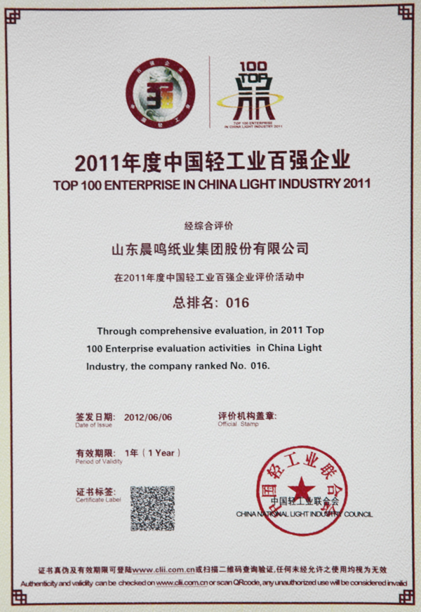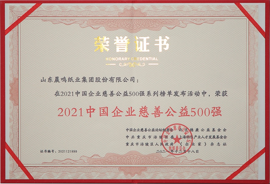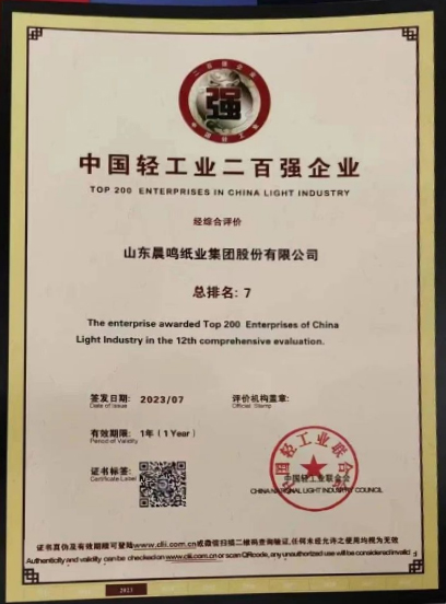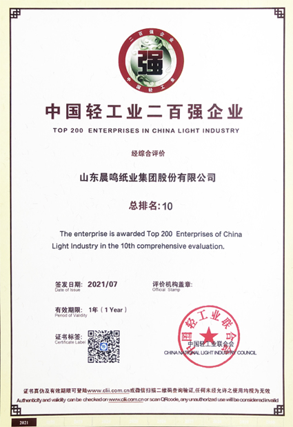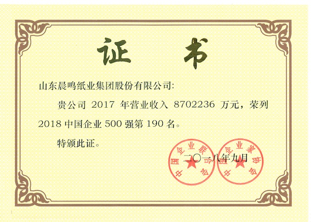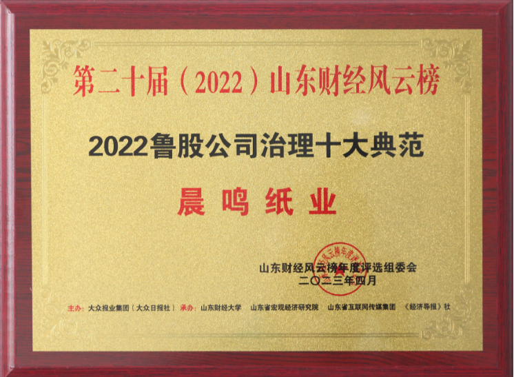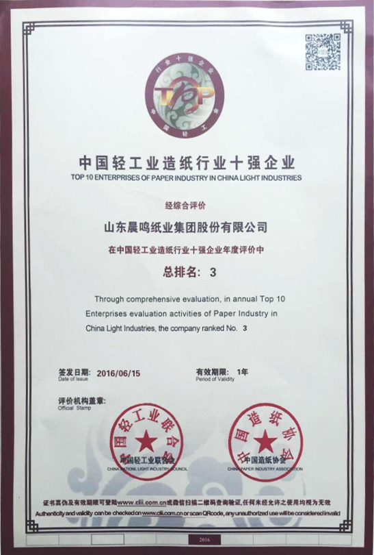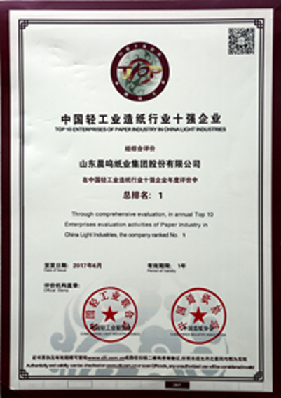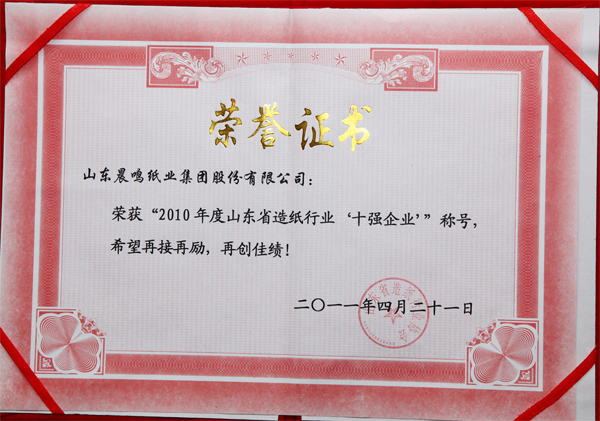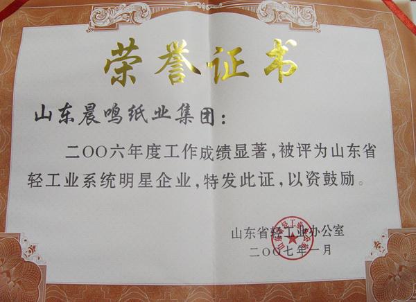 半个多世纪的探索和发展,让晨鸣集团荣誉满冠。晨鸣先后荣获中国企业500强、中国制造业500强、轻工业全国十佳企业、中国出口名牌、全国五一劳动奖状、中国企业管理杰出贡献奖、全国生态文明建设十大新闻人物、全国精神文明建设先进单位、中国造纸工业环境友好企业、中国企业集团纳税五百强、中国工业行业排头兵企业、全国造纸行业劳动关系和谐企业、山东省循环经济示范单位、低碳山东标杆企业等多项荣誉称号。