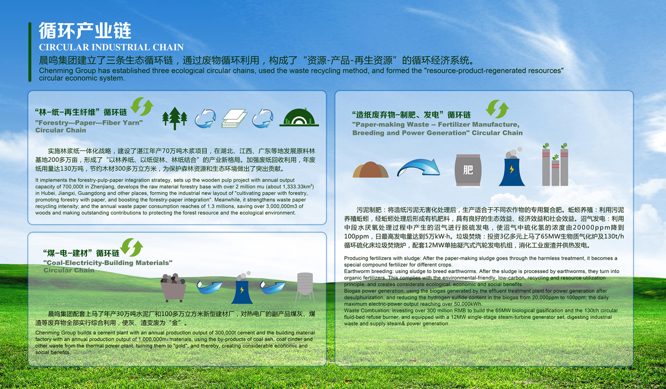 “造纸废弃物-制肥、养殖、发电”循环链。