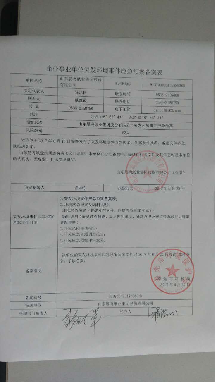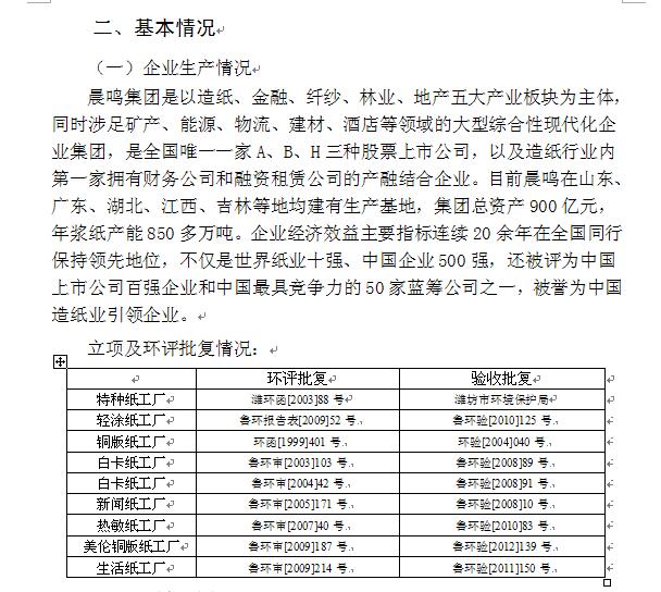 山东晨鸣纸业集团环境信息公开