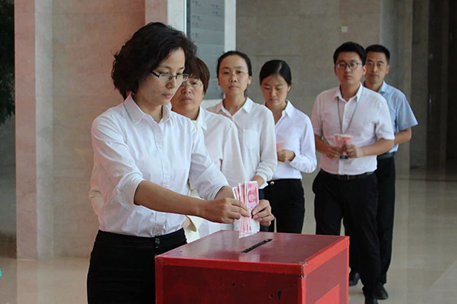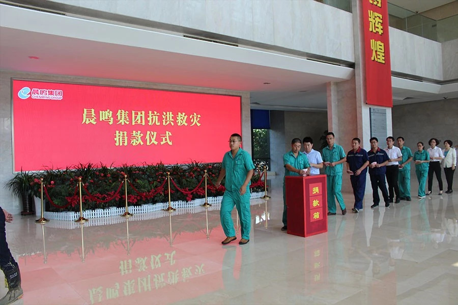 作为寿光市工业发展的领头羊和排头兵,晨鸣集团甘之如饴,不计得失,在抗灾自救的同时,主动承担社会责任,陆续组织抗洪救灾捐款,发动全员向灾区捐款献爱心,全体干部员工也积极响应,踊跃参加。8月27日上午,晨鸣集团办公楼大厅前,正在排队等候捐款的干部员工依次走到捐款箱前,郑重向箱内投进凝结着颗颗晨鸣爱心的捐款。